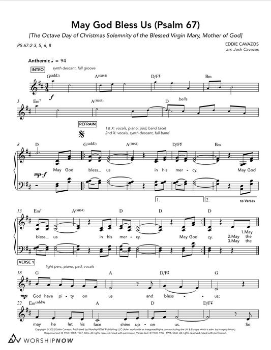May God Bless Us (Psalm 67) [Mary Mother of God | Year ABC] (Cavazos)